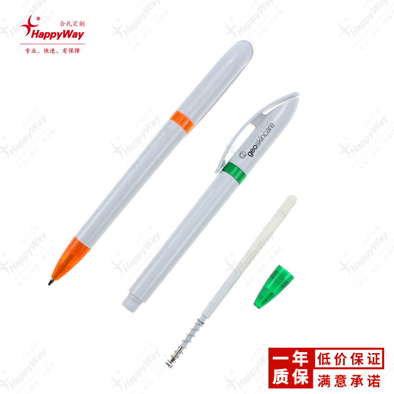 多彩白杆旋转圆珠笔 10支可印logo办公开业展会礼品定做